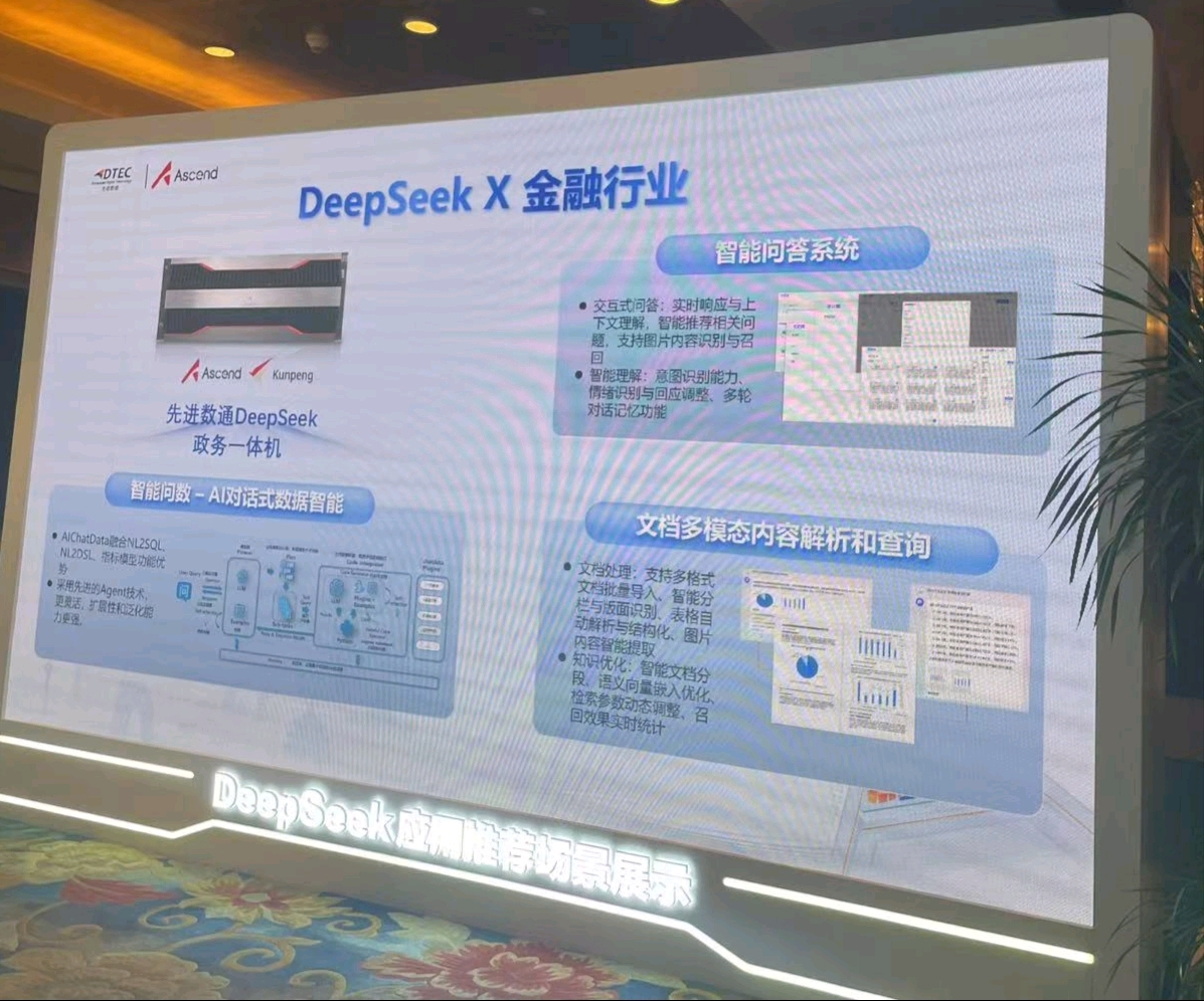 本次大会918博天堂(中国)展示了DeepSeek一体机,向业界全方位展示了其在金融科技领域的创新实力。918博天堂(中国)DeepSeek一体机的文档多模态内容解析和查询功能备受瞩目。它能够对各类金融文档,如研究报告、监管文件、交易记录等进行全方位解析,将文本、图表、图像等多模态信息转化为可高效查询和分析的结构化数据。金融组织借此可快速定位关键信息、洞察市场趋势、防范合规风险,为决策给予有力支持,实现从数据到价值的高效转化。